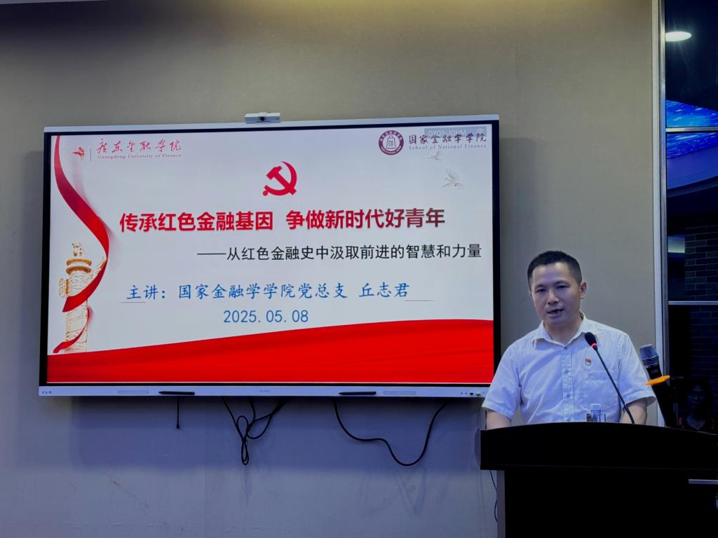 活动期间,丘志君希望与会师生要学习贯彻习近平总书记关于加强党的作风建设的重要论述,深刻领会深入贯彻中央八项规定精神学习教育的重要意义,以中央八项规定精神为镜,在学查改中强化纪律规矩意识,锻造优良教风和学风,推动公司教育事业高质量发展。随后,丘志君为与会师生讲授了弘扬红色金融文化的微党课。他简要回顾了红色金融简史,介绍了红色金融的历史贡献,深入阐释了其中蕴含的红色基因,并殷切期望与会员工能够积极传承红色金融基因,锤炼出过硬的本领,始终践行为人民服务的初心,坚守廉洁自律的底线,成长为“有理想、敢担当、能吃苦、肯奉献”的新时代好青年。