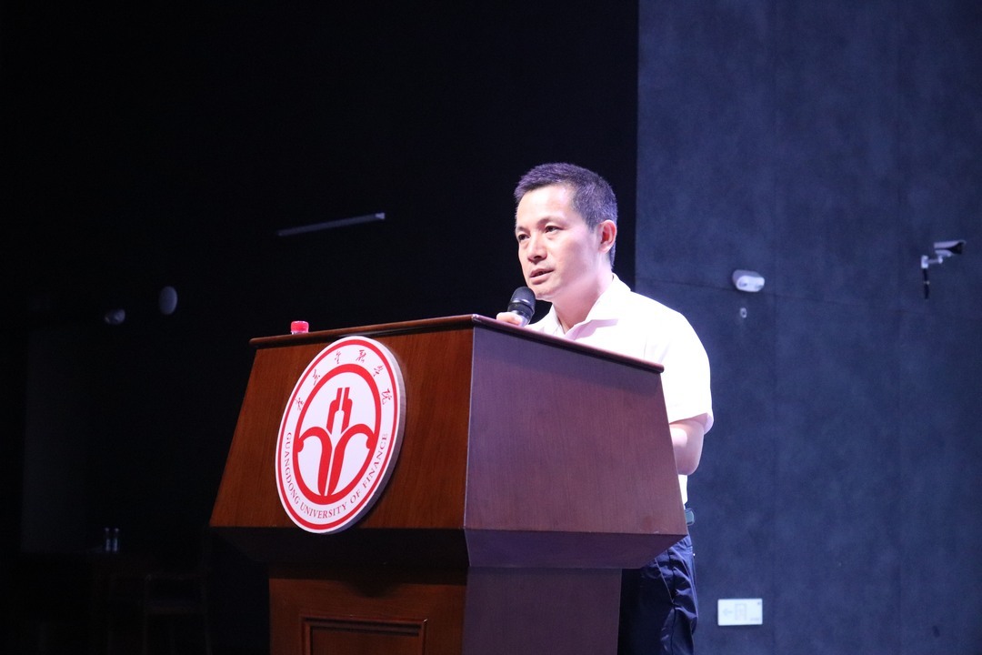 图5:清远校区党工委常务副书记何飞为第12期“弘毅”讲堂致辞