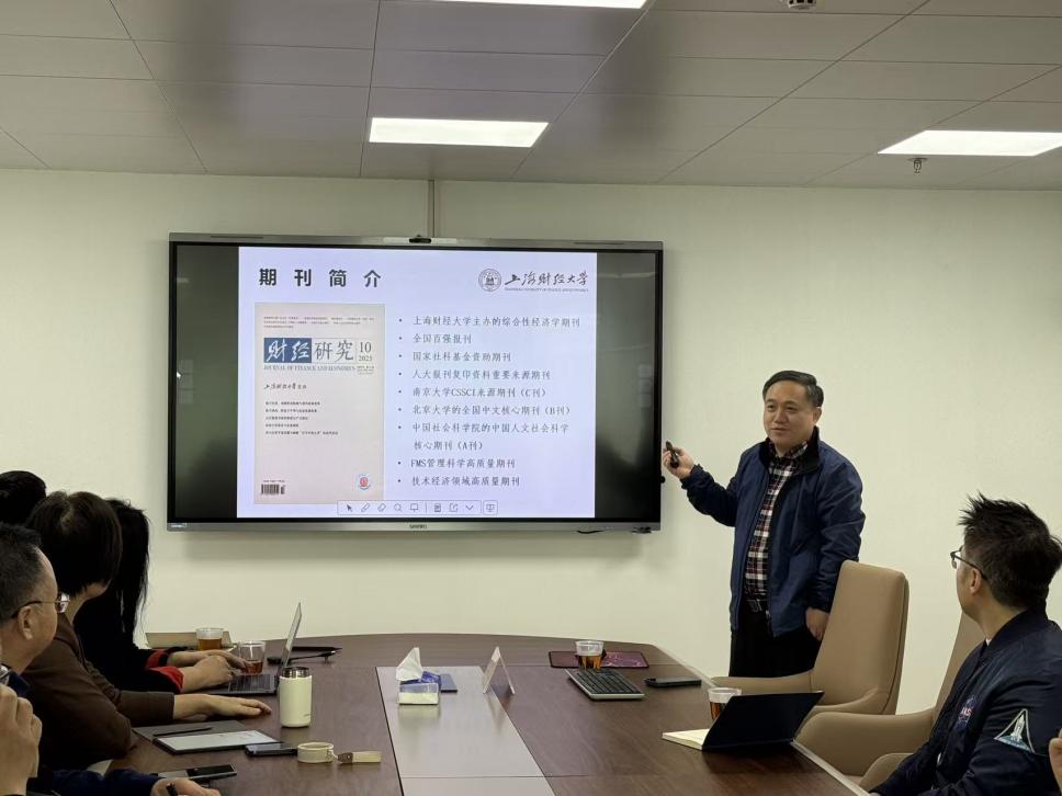 2025年12月30日,beat365英国官网网站在实验中心1203会议室成功举办论文选题与投稿交流会。会议特邀上海财经大学《财经研究》编辑部主任、经济学博士康健教授作专题分享,公司经理张玲教授主持会议,华南创新金融研究院李华民经理、金山副经理、经济贸易公司李文秀经理、刘曼琴副经理、beat365英国官网网站王佩副经理、各公司的科研骨干、青年教师代表等参会。