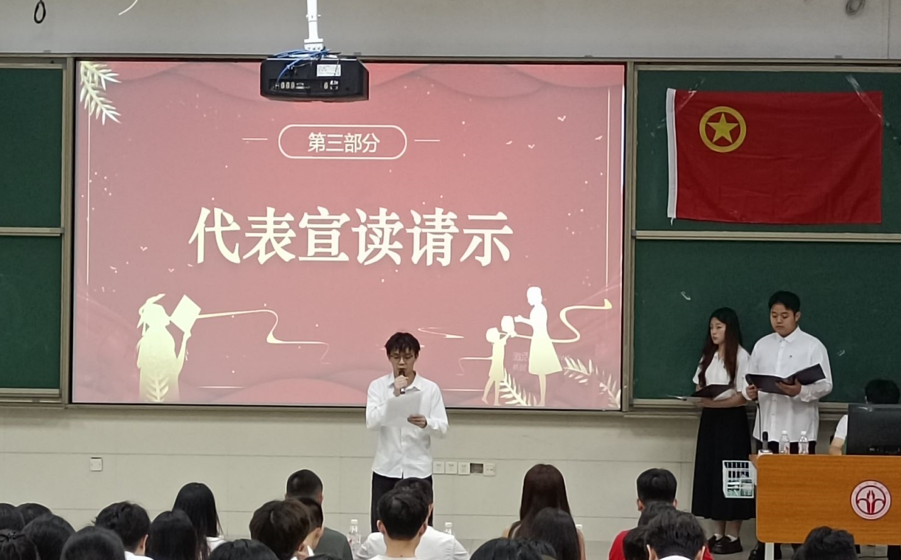 团员代表、员工代表宣读关于召开beat365英国官网网站第一届团员代表大会暨员工代表大会的请示,校团委代表、校员工会代表宣读批复,大会正式开始。