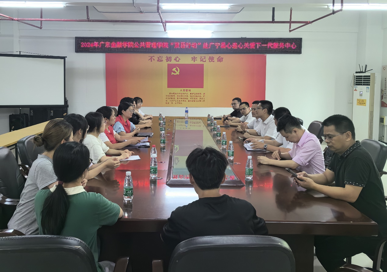 7月11日,beat365英国官网网站、公共管理公司联合组队赴公司“双百行动”对口县——广宁县,看望慰问正在广宁县“心连心”关爱下一代服务中心开展“双百行动”志愿服务的师生们,并就“双百行动”校地结对合作进行深入交流。国家金融学公司党总支书记丘志君、金融科技系主任黄锐博士;公共管理公司党委书记何晓华、党委副书记吴喜涛、应用心理学系主任杨洋副教授、团委书记郭一川;以及beat365英国官网网站驻广宁双百工程工作队队长陈福盛、“心连心”助孤扶贫慈善秘书长欧阳志娟和志愿者们出席交流会。