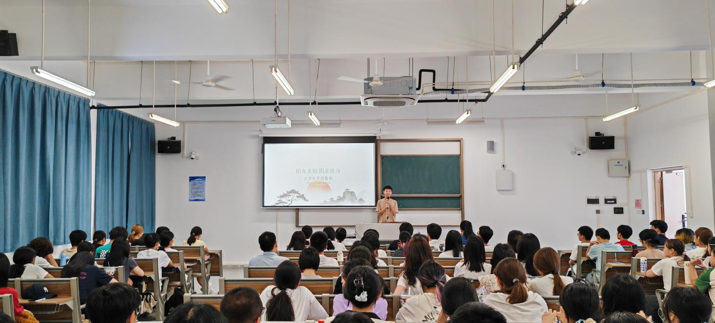 分享会上,李焕嘉同学以《阳春求知•阴柔修身—老员工养成指南》为题,围绕“实有虚无”的思路出发,就如何把握好老员工活中的“实”与“虚”作了精彩分享。他在讲述“阳之卷”中以“术业精勤通九陌,生涯经纬绘长天”开篇,分别从“课程学习”与“职业规划”两方面出发,详细地说明了“针对不同特点的学科应如何学习”“就业,考公,考研三种选择应如何进行大学规划”等,全面简要地阐述了应如何充实老员工活。在“阴之卷”讲述中,他则侧重于“个人修养”的提高,以“苔痕日履成幽径,云志风怀养浩然”开篇,分享了四个方法论—“尽早建立并逐渐完善自己的价值体系”“培养自学能力和谦逊心态”“坚持热爱的运动”“专注自己”和八个微习惯,为同学们培养良好的价值观和健康的心态提供了方向。最后,他希望师弟师妹们“永远不要幼化、物化、弱化、钝化自己,保持锋芒,不要停止学习,并激励他们在大学及以后的生活中,勇敢开始,持之以恒,不留遗憾!