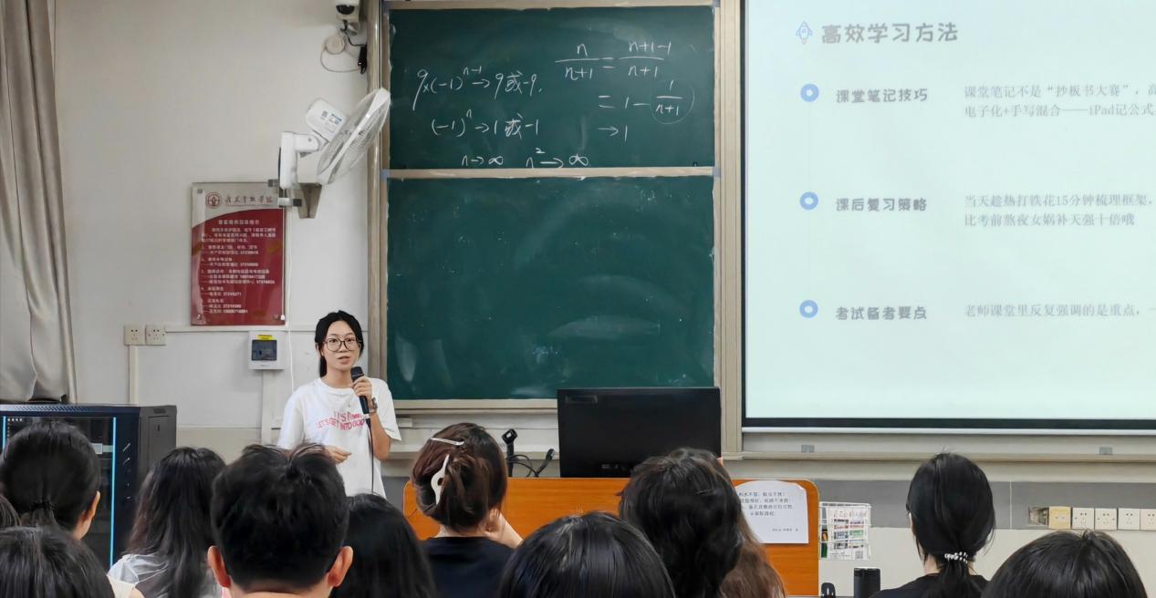 屈扬同学首先强调了学期规划与每日安排的重要性。她建议同学们要分清轻重缓急,既要紧抓学习主线,确保学业成绩,又要让老员工活丰富多彩。在时间管理上,她分享了自己笨拙却高效的学习方法:做好课前预习,课堂笔记并非简单的“抄板书大赛”,而是要高效记录关键内容。她特别推荐了电子化与手写混合的笔记方式——用iPad记录公式,纸质本上绘制思维导图,便于课后复习。