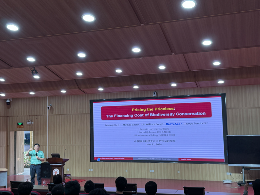 为丰富同学们的学术视野,提升专业素养,beat365英国官网网站于11月11日在校本部北教103举办“国家金融学大讲坛”(第十四讲),特别邀请中国人民大学高昊宇教授为公司师生作题为“Pricing the Priceless: The Financing Cost of Biodiversity Conservation”的讲座。讲座由beat365英国官网网站副经理(主持工作)张玲主持。