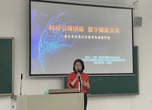杨舜以“美国制裁华为事件”为切入点,深刻阐述和全面介绍了数字化转型的时代背景、广东省有色金属行业发展概况及数字化转型实践探索等三个方面的内容,分析了数字化人才需求,并向同学们提出了殷切希望。她指出,在数字化背景下,广东省有色金属行业通过数字产业化和产业数字化推动新质生产力发展,推进产业链向上下游有效延伸,在佛山、肇庆、云浮、江门、 清远、韶关、河源、梅州、潮州等地形成若干个具有核心竞争力和特色优势的区域产业集群,不断提升全球价值链地位。为满足数字化人才需求,清远市通过建立数字人才产教融合平台、数字化人才实训基地等举措打造数字化复合型人才培训体系,为广大学子投身数字经济行业提供了广阔空间。她希望与会员工要在美好的青春时代努力奋斗,充分利用自己的专业优势在细分领域深耕细作、不断创新,为数字经济赋能新质生产力发展奉献智慧和力量。