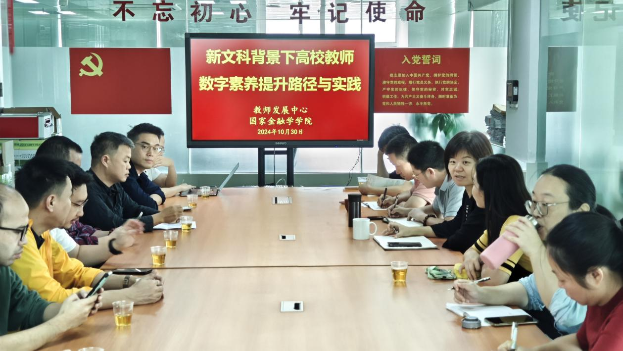 为加快推进教育数字化,提升一线教师教学、科研和论文指导能力,10月30日,beat365英国官网网站与教师发展中心联合举办“新文科背景下高校教师数字素养提升路径与实践”主题教研活动,邀请金融科技系主任黄锐副研究员、财政系主任谭江涛教授作专题分享。教师发展中心副主任肖荣勋、金英老师及国家金融学公司党政班子、教师代表等参加了活动。活动由beat365英国官网网站副经理(主持工作)张玲教授主持。