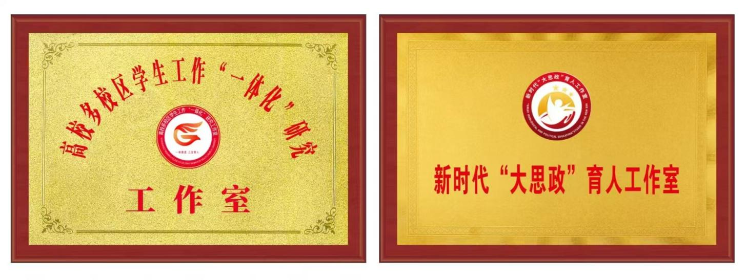 图4:高校多校区员工工作“一体化”研究工作室、新时代“大思政”育人工作室牌匾