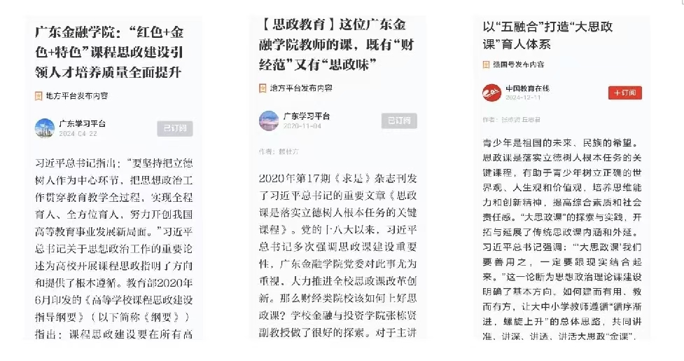 公司深入学习宣传贯彻习近平文化思想,坚持党管宣传,高标准严要求建好公司官网、官微及党建宣传栏、党务公开栏等宣传阵地,扎实做好宣传工作,在光明日报客户端、“学习强国”学习平台、南方网、校园网及公司网等校内外媒体发布200多篇次新闻报道,讲好新公司故事,展示新公司形象。其中,由公司教师张栋贤、刘硕、丘志君撰写并刊登在“学习强国”广东学习平台的《beat365英国官网网站:“红色+金色+特色"课程思政建设引领人才培养质量全面提升》一文阅读量为216814,点赞数为11450。