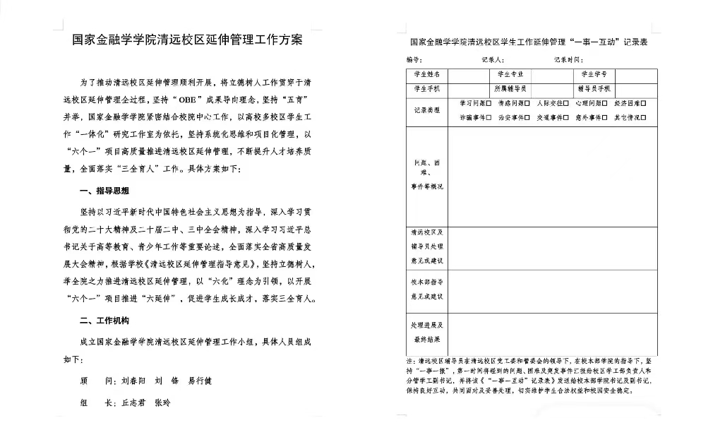 自开展清远校区延伸管理“六个一”项目以来,公司校本部已累计收到多份清远校区员工工作延伸管理《一事一互动表》;已落实每周1次以上的值班接访任务;已举办8场“弘毅”讲堂系列讲座,受众员工超1000人次,员工也通过听讲座攒了二课学分;已举办2场师生座谈会,将收集到的问题列入“我为师生办实事”项目,分类分期解决并给予反馈;已组织多支员工队伍参加“三下乡”实践活动,并结合清城区东城街道实际,以“文旅绚创淀新绿,新媒赋能美东城”为主题,组建了“百千万工程”“绚创突击队”;以及分别召开2024年度延伸管理工作部署会议、总结会议。近期,该“六个一”项目被评为2024年广东高校思想政治工作优秀案例优秀奖。