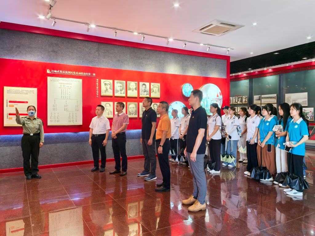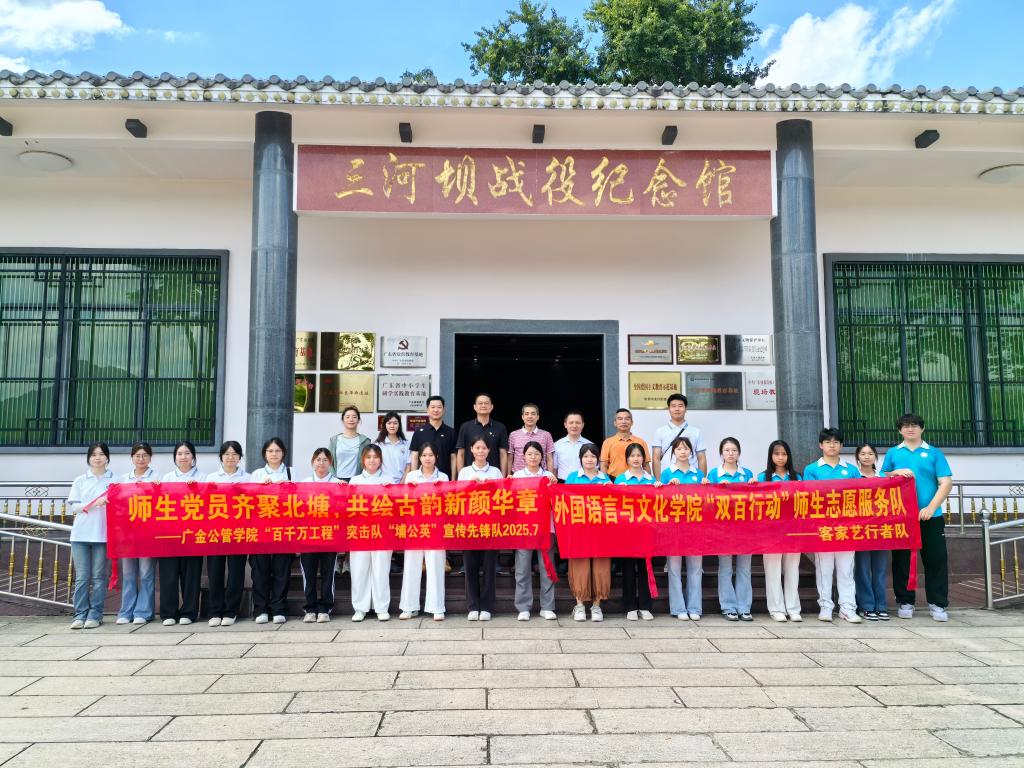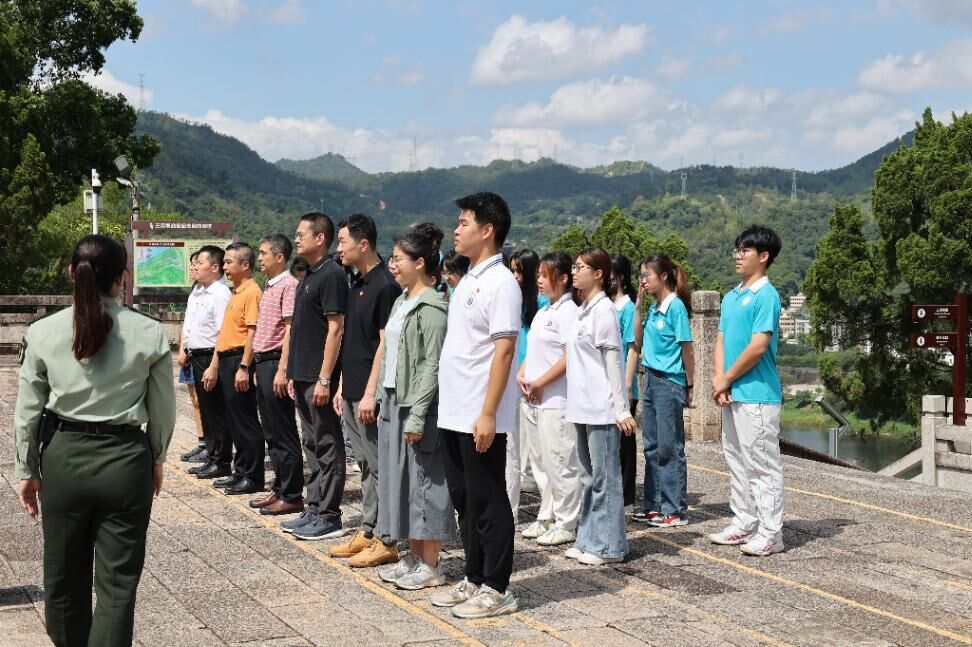 2025年7月5日,beat365英国官网网站员工工作办公室、公共管理公司、外国语言与文化公司、beat365英国官网网站、广金“双百行动”驻大埔县服务队前往梅州市大埔县“八一”起义军三河坝战役纪念园开展主题为“追寻红色足迹 砥砺初心使命”的党日活动。员工工作办公室主任赖志成、公共管理公司党委书记何晓华、外国语言与文化公司党委书记黄庆雄、国家金融学公司党总支书记丘志君、广金“双百行动”驻大埔县服务队队长陈伟欣以及公共管理公司“百千万工程”突击队“埔公英”宣传先锋队成员和外国语言文化公司“双百行动”师生志愿服务队“客家艺行者”队成员参加了此次活动。