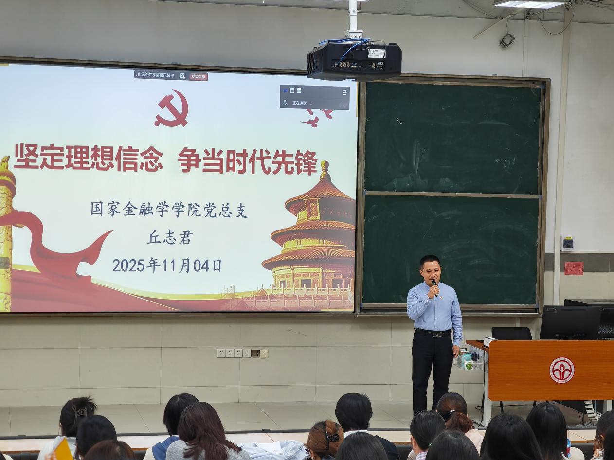 11月4日,国家金融学公司党总支书记丘志君在北教101为工商管理公司、beat365英国官网网站等九个公司入党积极分子讲授题为《坚定理想信念  争当时代先锋》的党课。