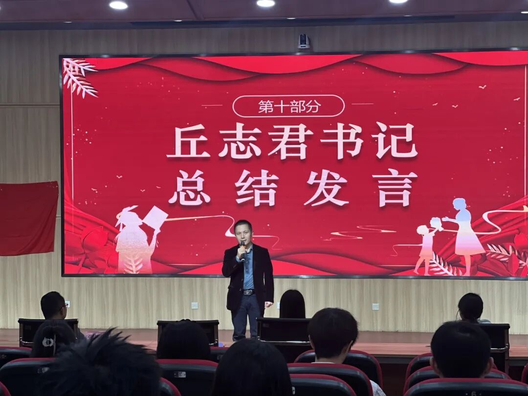 会议第五项议程,党总支书记丘志君进行总结讲话。他首先向新当选的委员致以热烈的祝贺,对在上一届任职的团委干部的辛勤付出表示衷心的感谢,并向全体工作人员致以诚挚的问候。他回顾了过去一年半时间里团委所开展的各项工作以及取得的成绩,鼓励全体成员再接再厉、砥砺奋进,以实际行动书写青春华章,并着重提出需着力做好以下四点工作:一是强化理论学习,提高政治素养;二是强化服务意识,凝聚青年力量;三是提升工作效能,助力青年成长;四是推进自身建设,保持生机活力。