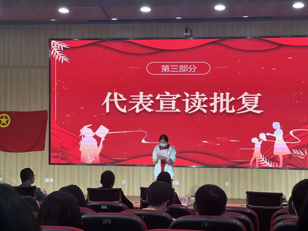 会议第一项议程,由院团委代表黄烁行宣读关于召开本届团员代表大会的请示。随后,校团委代表宣读同意召开此次会议的批复。