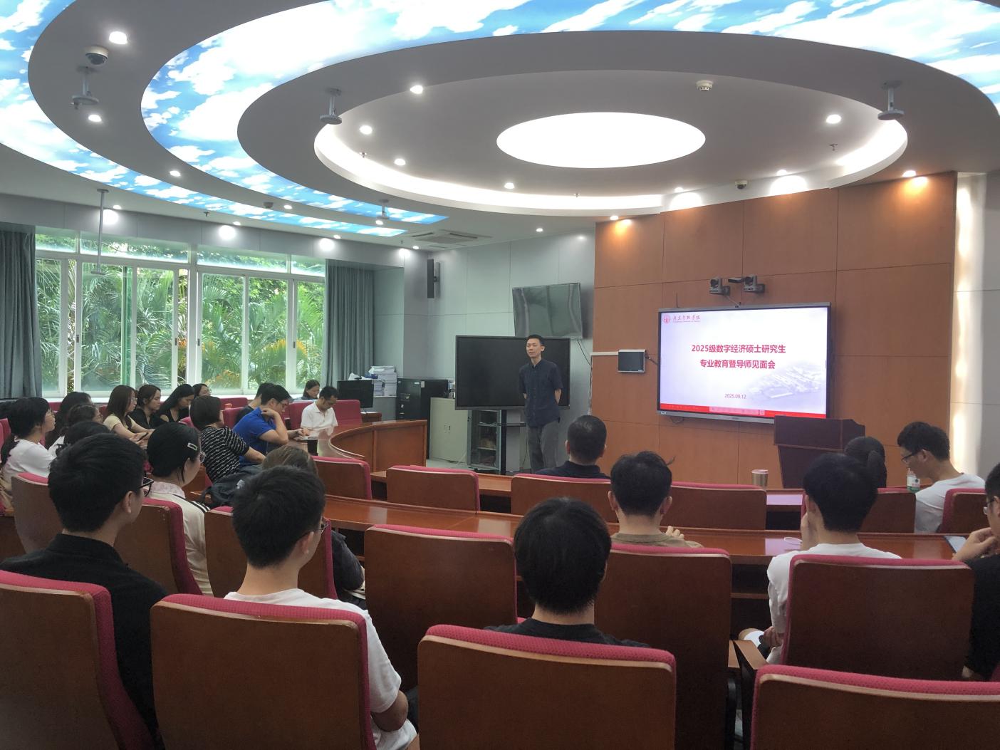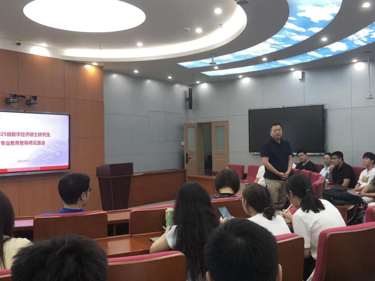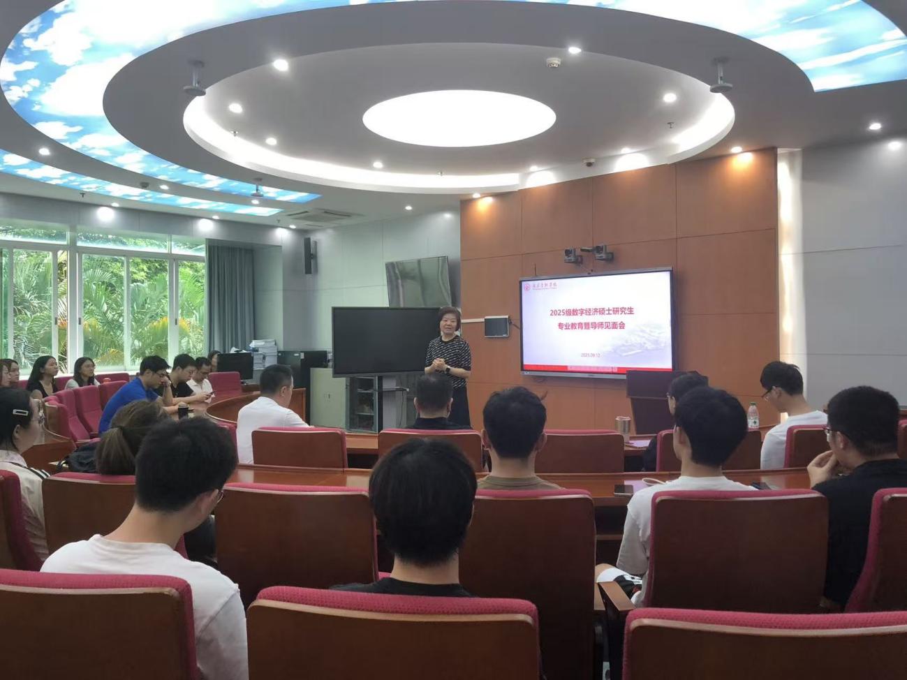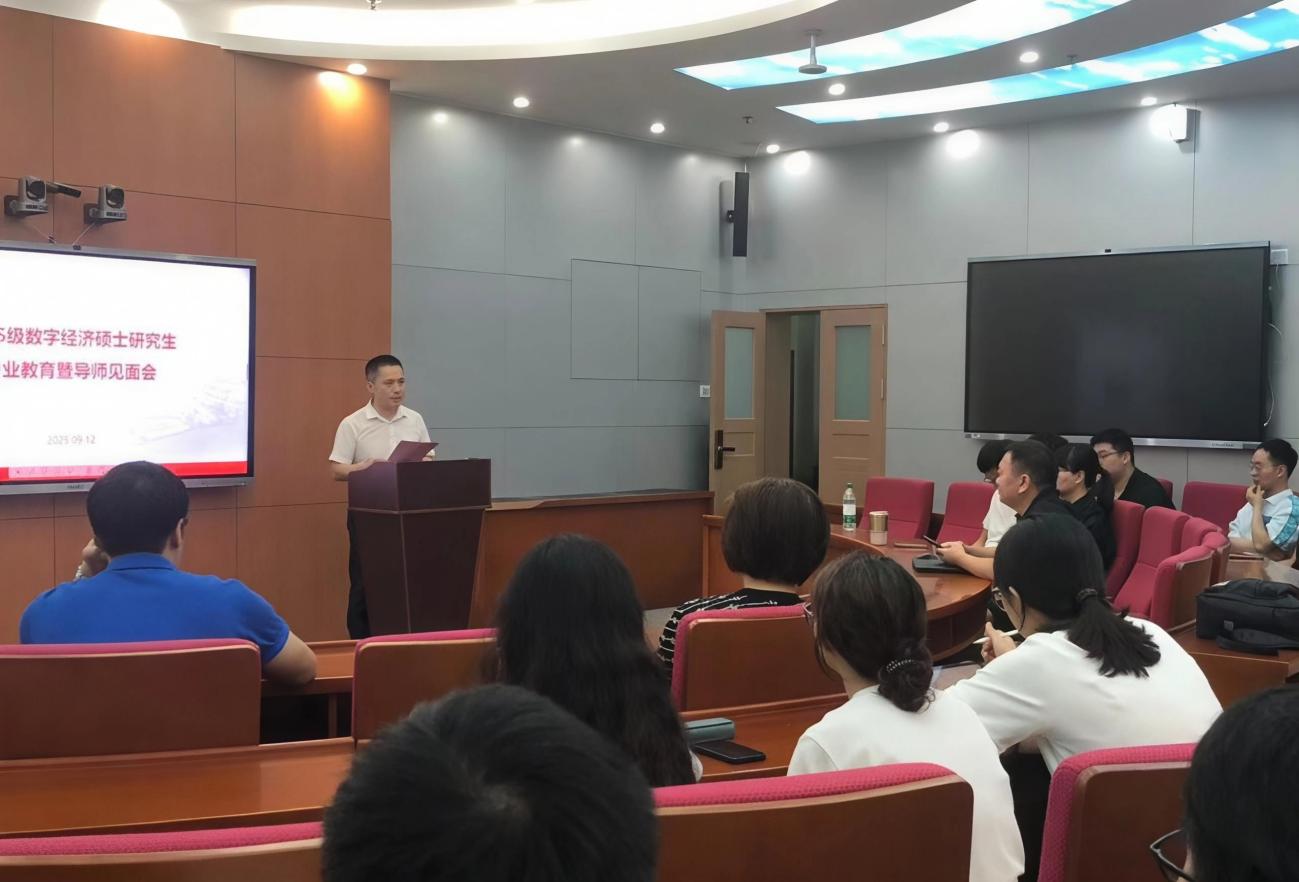 9月12日,beat365英国官网网站在实验教学中心举办2025级数字经济专业硕士研究生专业教育暨导师见面会。公司党总支书记丘志君、经理张玲教授、数字经济学位教育中心负责人、研究生导师代表出席了见面会,2025级全体数字经济专业硕士研究生参加了会议。会议由学位教育中心主任刘勇主持。
